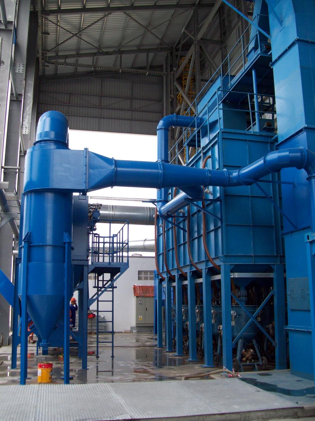 磨料運送方式是該設備設計的另一亮點。除了眾所周知的需要很小安裝深度的扁平式傳送地面以外,在螺旋傳送機和振動橫格磨料傳送技術等方面具有極其豐富的經驗。對于大型工件一般采用開放式噴砂。
